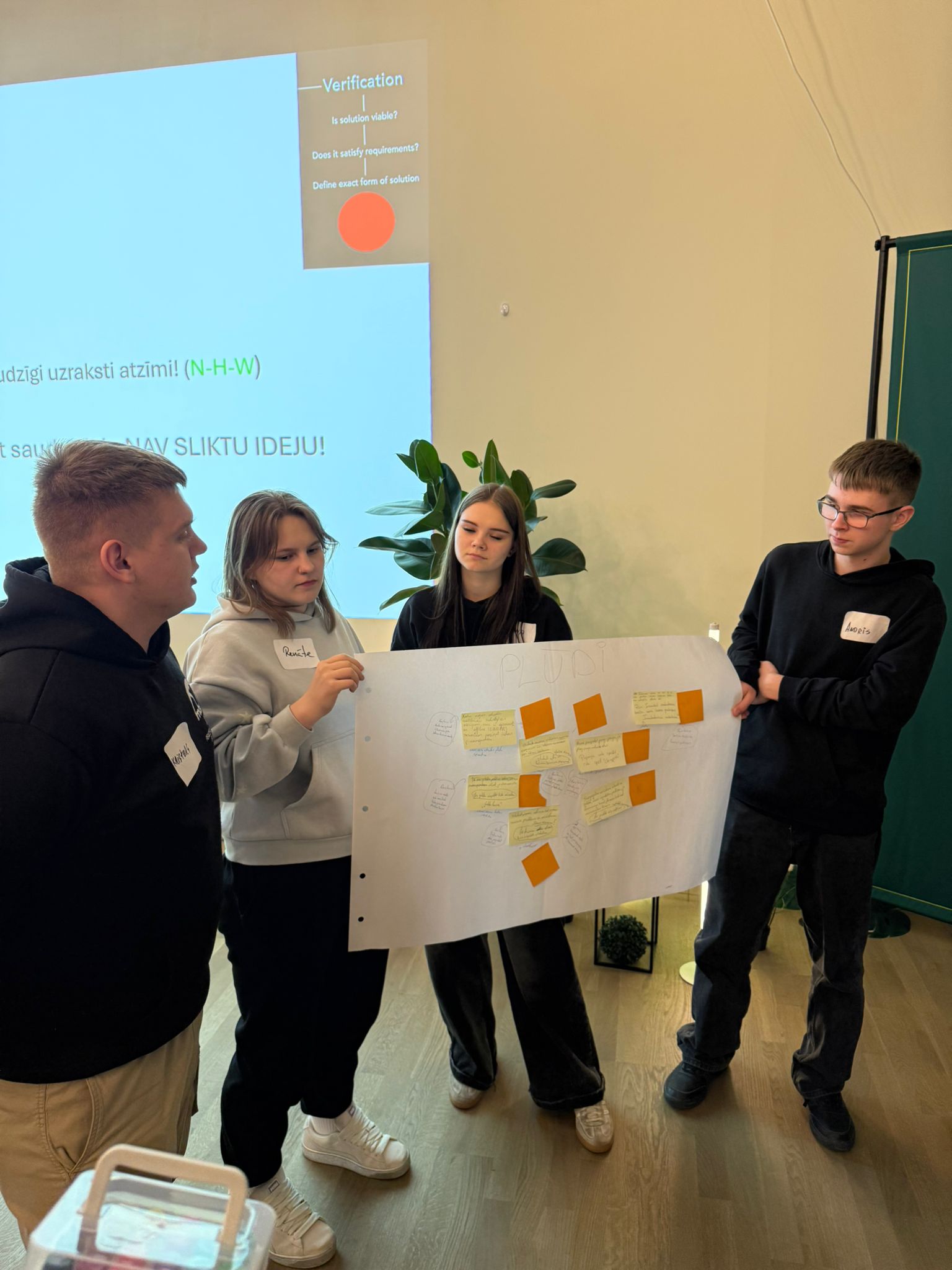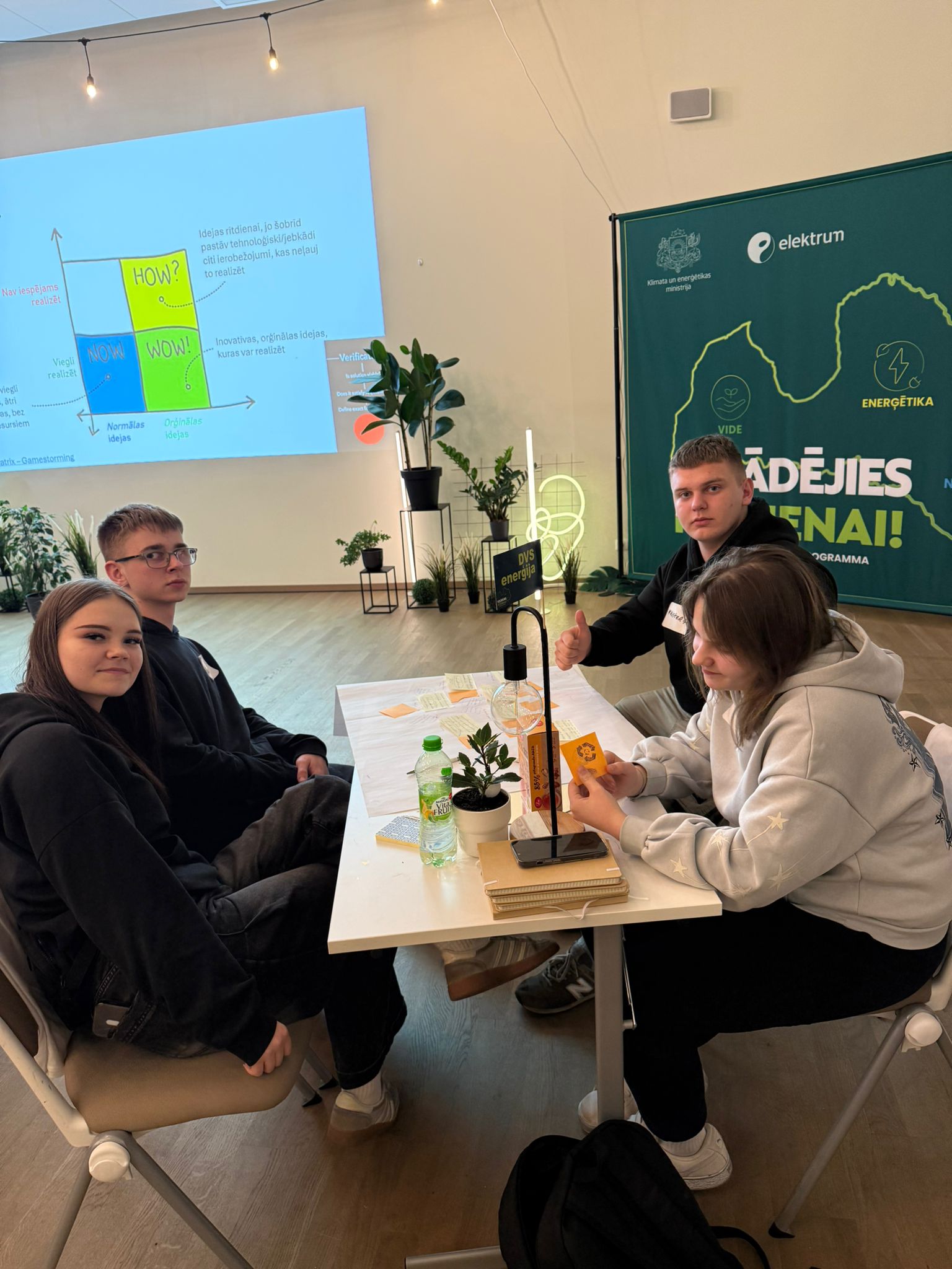 18.martā Dricānu vidusskolas 11.klases skolēni - Renāte Anufrijeva, Kristers Lapinskis un 10.klases skolēni - Adriana Aleksejeva, Andris Ribakovs, Rīgā piedalījās Klimata un enerģētikas ministrijas organizētajā jauniešu inovāciju programmā “Uzlādējies rītdienai” pirmajā praktiskajā darbnīcā “Izaicinājums → Ideja”.