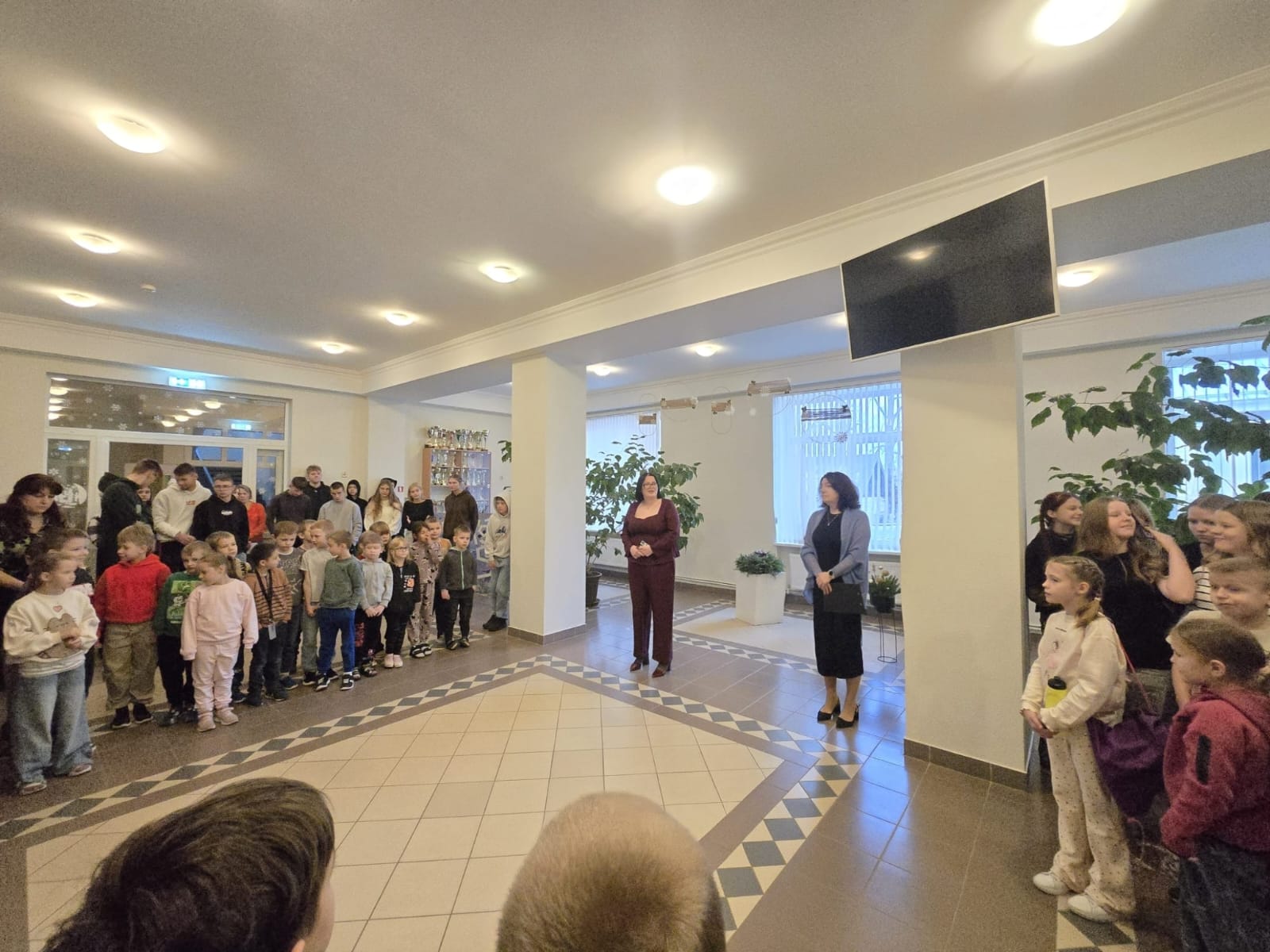 Dedzot svecīti, skolas direktore Vivita Ruško-Elste aicināja mazliet apstāties un ieraudzīt labo sev apkārt — drauga smaidu, skolotāja rūpes, kopības sajūtu, kas padara mūsu skolu īpašu, vairāk dalīties sirsnībā un mazāk steigties, vairāk pateikt “paldies” un mazāk kritizēt, vairāk pamanīt labo un radīt to pašiem.