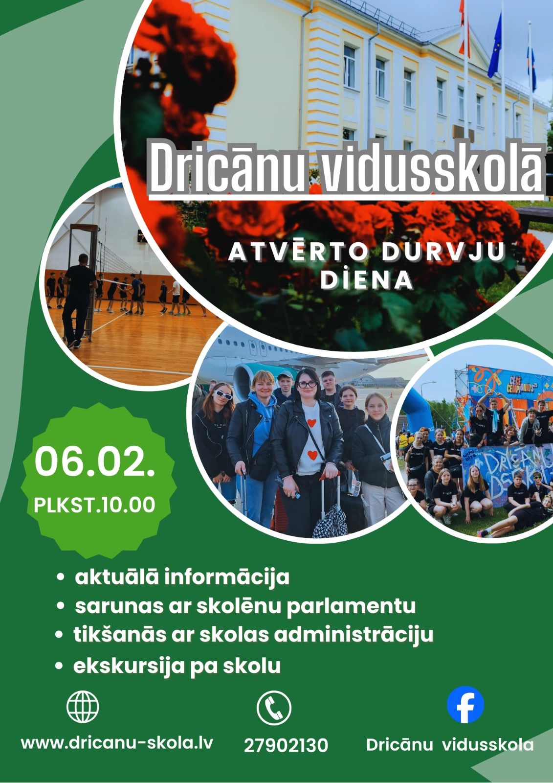 Ar prieku gaidāms topošos vidusskolēnus un viņu vecākus Dricānu vidusskolas Atvērto durvju dienā!